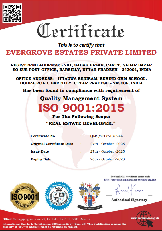 Evergrove Estates Pvt. Ltd. is a transformative real estate company driven by a commitment to trust, reliability, timely delivery, and innovation. With a vision to harmonize natural serenity with contemporary living, we create thoughtfully designed residential environments that balance tranquillity, functionality, and long-term value.